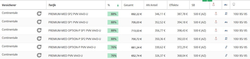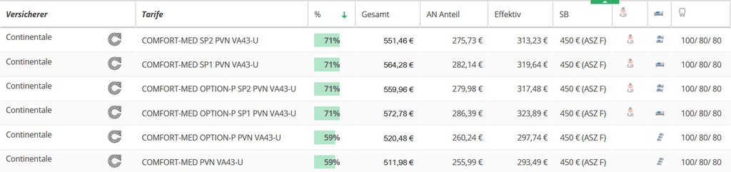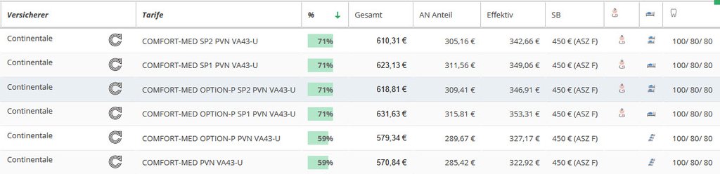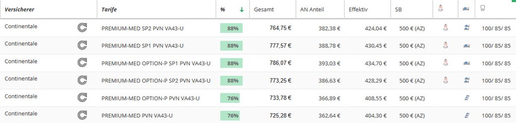 Ärztetarif Continentale Krankenversicherung Vergleich – Stand 01/2021