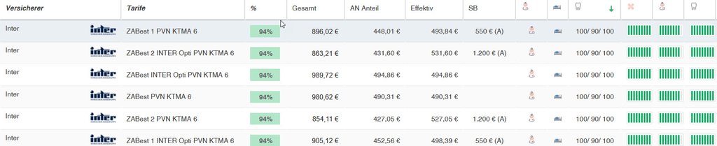 Zahnärztetarif Inter Krankenversicherung Vergleich – Stand 01/2025 Zahntarife inklusive / ohne Zahnbehandlung, Zahnersatz, Material- und Laborkosten.