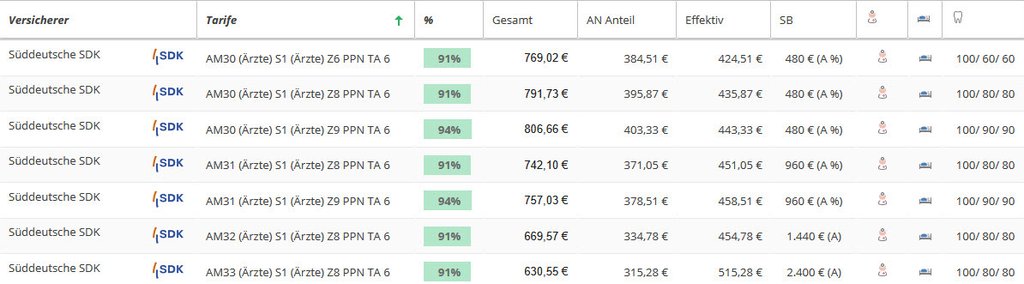 Ärztetarif SDK / Süddeutsche Krankenversicherung